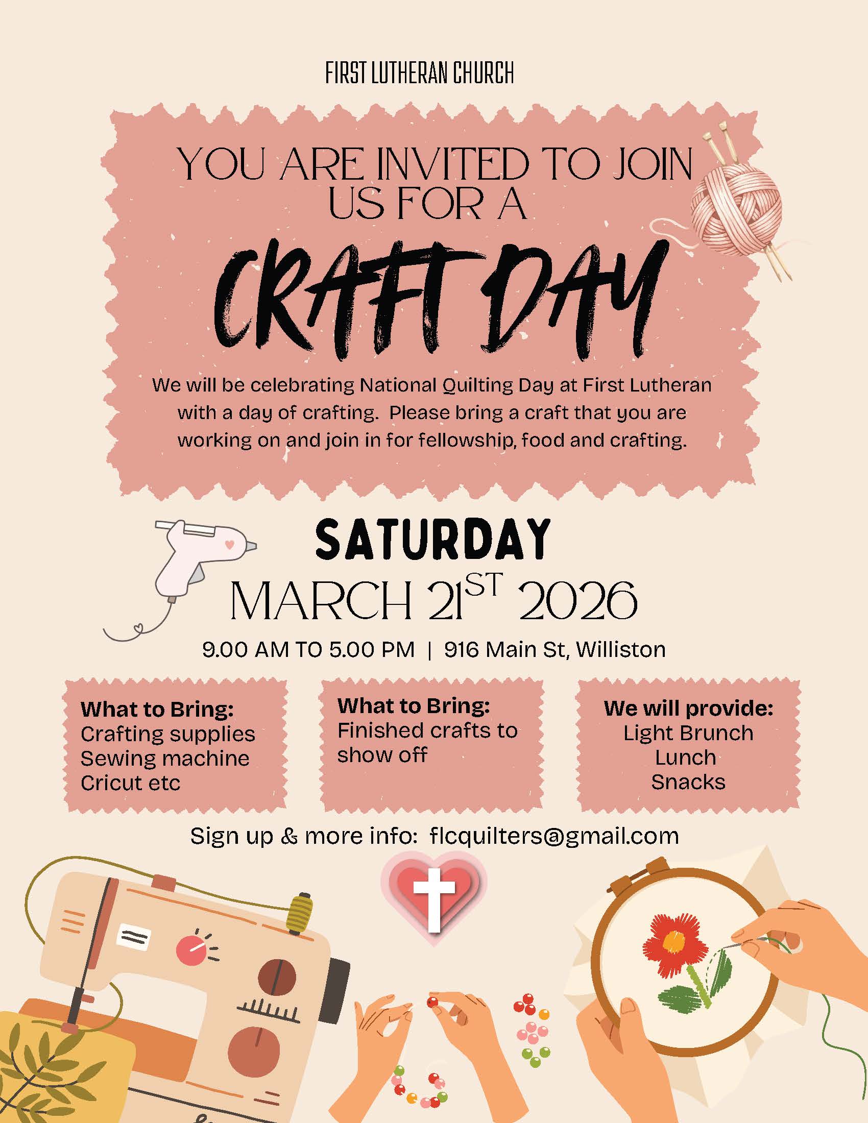 We will be celebrating National Quilting Day at First Lutheran with a day of crafting.